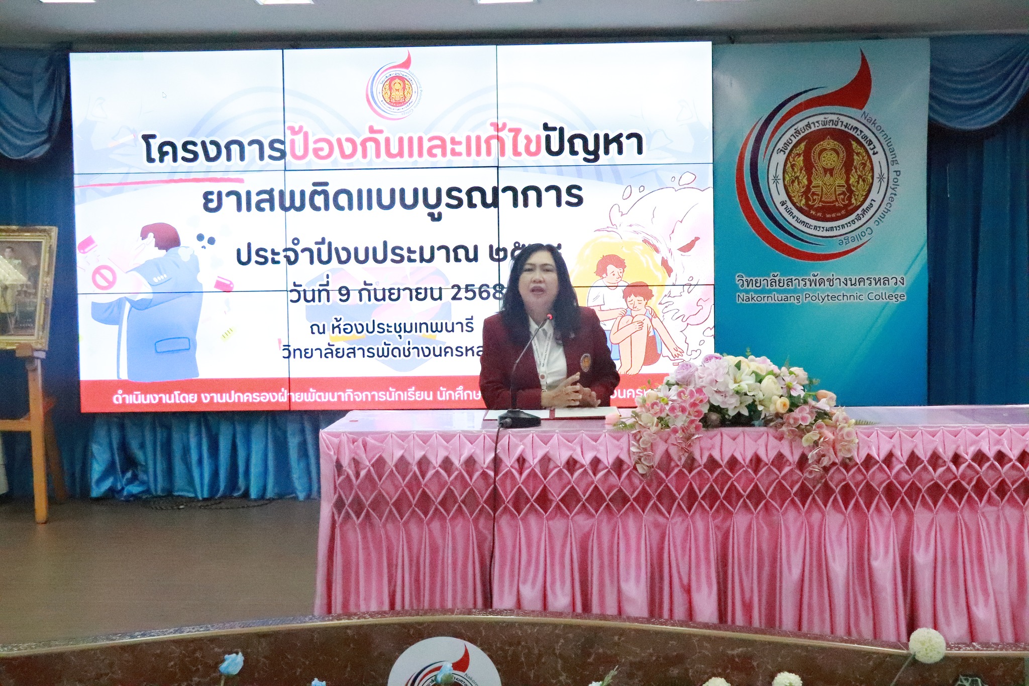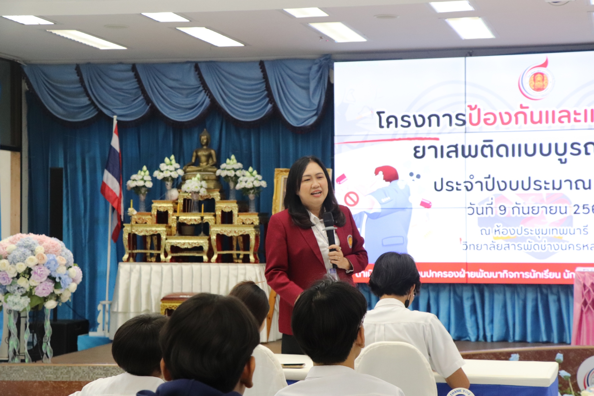 โครงการป้องกันและแก้ปัญหายาเสพติดแบบนูรณาการ 09/09/202527/09/2025adminกิจกรรม วันที่ 9 กันยายน 2568 ดร.สุนทรี อาจทวีกุล ผู้อำนวยการวิทยาลัยสารพัดช่างนครหลวง พร้อมด้วยคณะผู้บริหาร ครู บุคลากรทางการศึกษา นักเรียน นักศึกษา อบรม โครงการป้องกันและแก้ปัญหายาเสพติดแบบนูรณาการ ณ วิทยาลัยสารพัดช่างนครหลวง