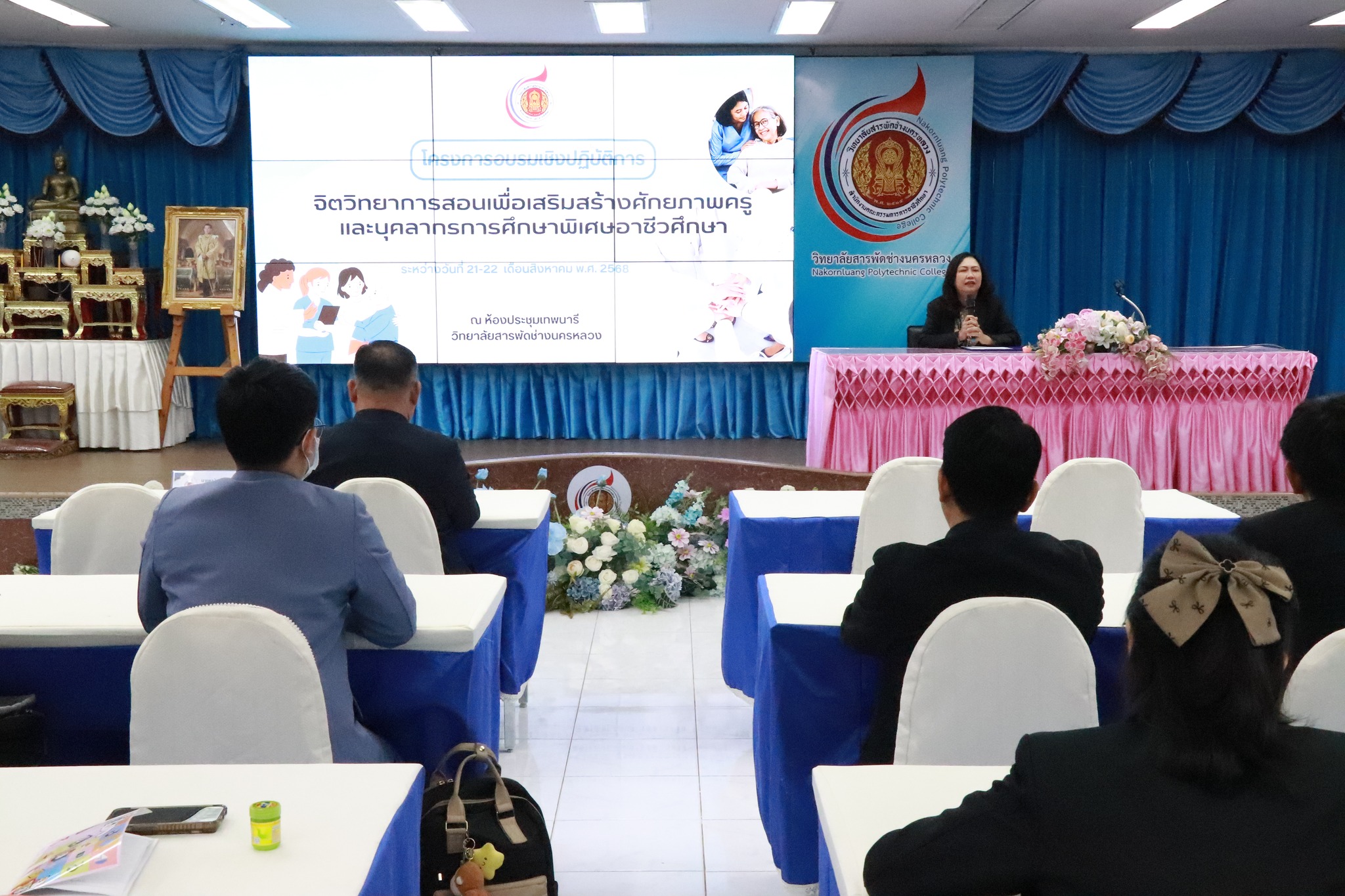 วันที่ 21 สิงหาคม 2568 ดร.สุนทรี อาจทวีกุล ผู้อำนวยการ วิทยาลัยสารพัดช่างนครหลวง ปฎิบัติหน้าที่ผู้อำนวยการศูนย์การศึกษาพิเศษอาชีวศึกษากรุงเทพมหานคร พร้อมด้วยคณะผู้บริหาร คณะครู และหน่วยงานภายนอก เข้าร่วมอบรมโครงการอบรมเชิงปฏิบัติการจิตวิทยาการสอนเพื่อเสริมสร้างศักยภาพครูและบุคลากรการศึกษาพิเศษอาชีวศึกษา ภายใต้ศูนย์การศึกษาพิเศษอาชีวศึกษากรุงเทพมหานคร