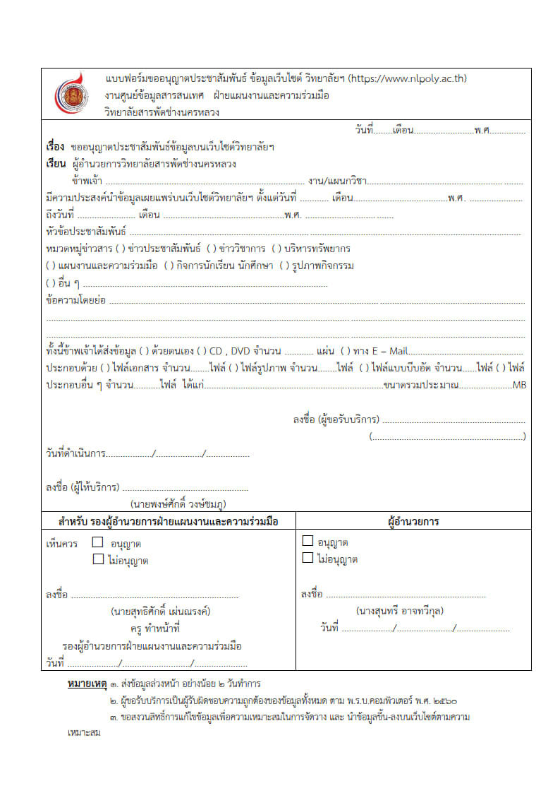 แบบฟอร์มขออนุญาตนำข้อมูลลงเว็บไซต์วิทยาลัย 18/11/202115/12/2025adminแบบฟอร์ม คำร้องต่างๆ แบบฟอร์มขออนุญาตนำข้อมูลลงเว็บไซต์วิทยาลัย ปีการศึกษา 2568 สามารถดาวน์โหลดที่ไอคอนนี้ ตัวอย่างงาน